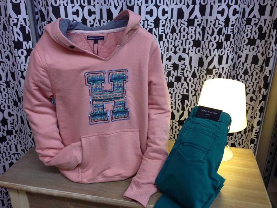 Y ESTA SUDADERA, ES IDEAL, CON EL LOGO DE LA MARCA FORMADO CON ABALORIOS, Y PANTALON TAMBIEN DE TOMMY A TONO CON EL LOGO, SUPER CHULAS